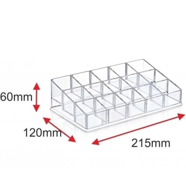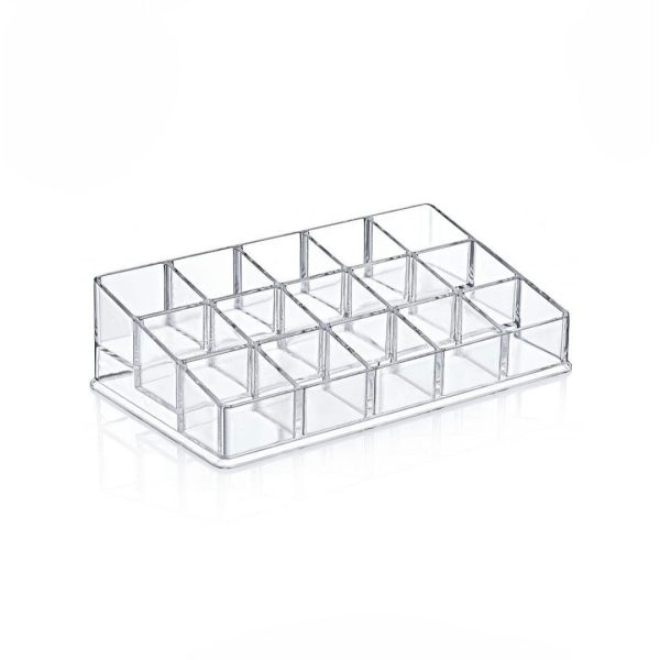 Такий органайзер — чудове рішення для зберігання косметики. Органайзер має 15 комірок для вертикального зберігання, забезпечуючи легкий доступ до кожної