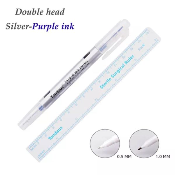 Маркер хірургічний стерильний Tondaus 0,5мм+1,0мм важкостираючий, двосторонній, синій, корпус сріблястий.