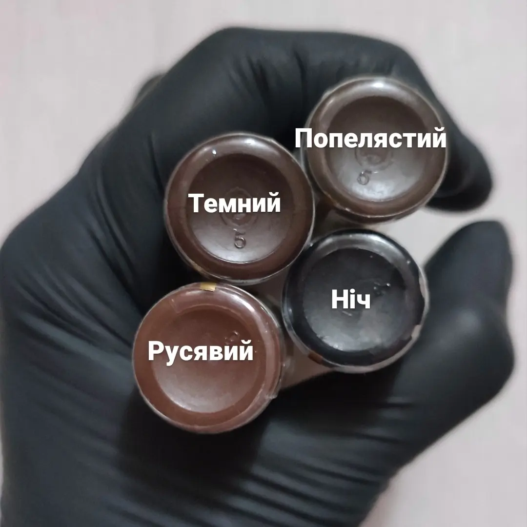 Соковитий коричневий. Насичений щільний колір гарних коричневих брів. Універсальний підходить для перманентного макіяжу брів та розтушовування очей.